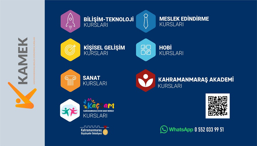 Büyükşehir Belediyemiz İnternet Sitesinden duyurular bölümünden veya kamek.kahramanmaras.bel.tr adresinden hangi tarihte hangi kursların açılacağı yayınlanacaktır. Ya da İletişim bölümümüzden Müdürlüğümüze ulaşabilir ve bilgi alabilirsiniz.